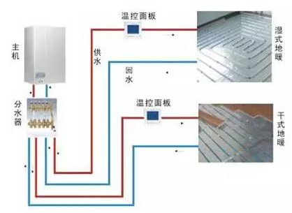 水地暖是以不高于60℃的水不断在地暖管中循环加热。均匀辐射加热到整个地面,利用地暖自身的蓄热量向房间各个角度辐射热量,从而达到取暖目的。