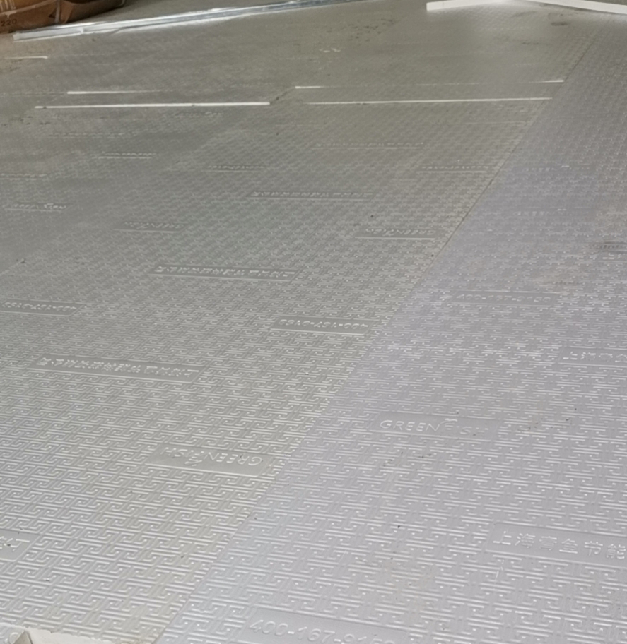 Tips:地面找平完成后,在上方铺设保温板,板缝处用胶粘贴牢固,保温层要铺设平整。为了防止热量向下流失,保温板上再运用铝箔反射膜铺设一层保护层,反射膜铺贴在保温板上,保持平整,不得有褶皱,不能漏出保温板或者地面。