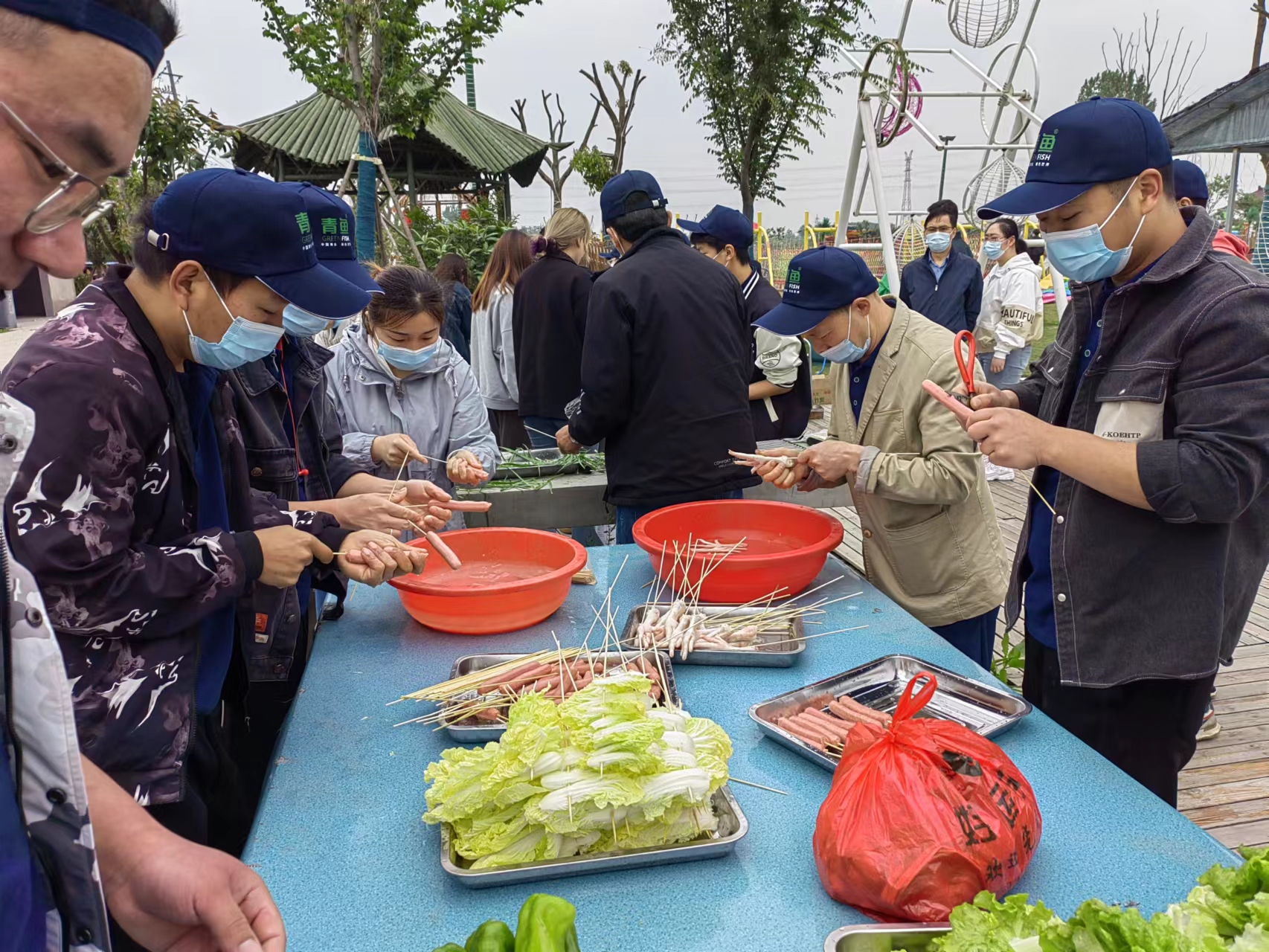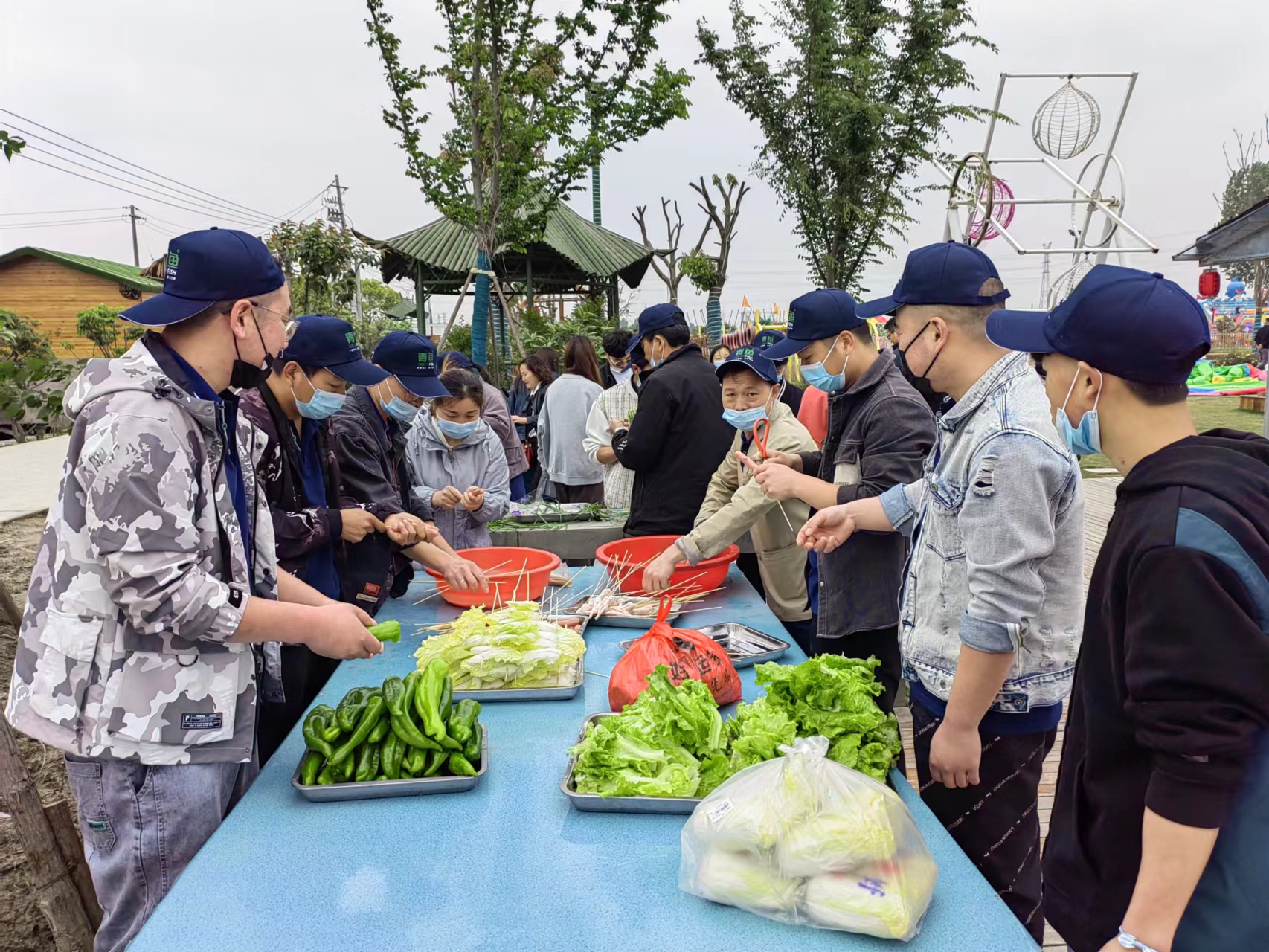 9点30分团队成员从公司门口出发,到达目的地后,根据预先规划方案,全体员工积极开启野外烧烤模式,彼此争先恐后的忙碌起来,精心准备食材及配料等,一切都只是为了让大家在紧张的工作中,好好享受一场美食盛宴,好好放松。景区环境优美,风景怡人,衬托大自然的美,整个氛围温馨而欢乐。
