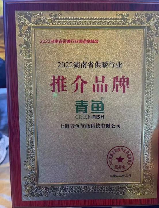 青鱼荣获2022湖南省供暖行业畅销品牌
