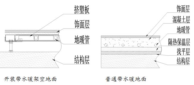 铺设水(电)暖铺设过程中,基层铺设顺序同调平地面,加热层铺设仅需在结构层与饰面层中间增铺地暖管即可。因饰面层底边与地暖管间零距离,升温效果较传统装修更快且可均匀导热。干法施工作业水暖无需回填,省去水泥、找平等诸多工序,可大大降低人力成本及建筑垃圾。