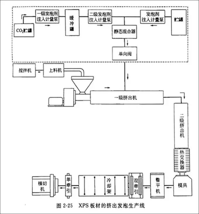 XPS是将聚苯乙烯、发泡剂和催化剂通过挤出机,进行连续挤出发泡成型的一种发泡材料。XPS板是连续挤出成型。